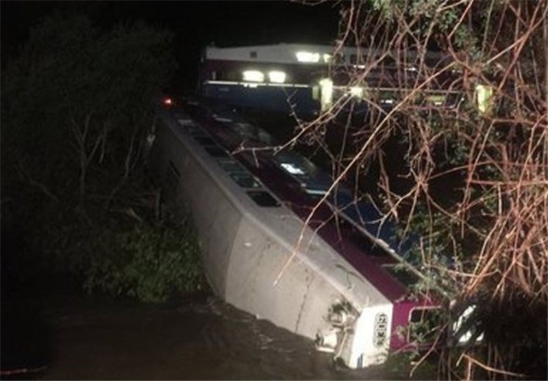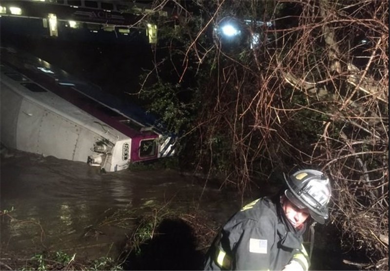 قطار مسافربری کالیفرنیا که بیش از 200 مسافر داشته بعد از برخورد با تنه یک درخت که بر اثر بارندگی شدید روی ریل افتاده بود از خط خارج شده و داخل یک نهر سقوط کرده است.