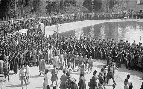 پس از آنکه بازوبند پهلوان اولی به بازوی ابراهیم بسته شد ناصرالدین شاه امر کرد از سراسر ایران پهلوانان نامی برای کشتی گرفتن به تهران بیایند و در حضور او با ابراهیم جوان مبارزه کنند. از آن روز هر از چندی مردان قدرتمند ولایات مختلف داوطلب کشتی میشدند که یکی پس از دیگری مغلوب می شدند.