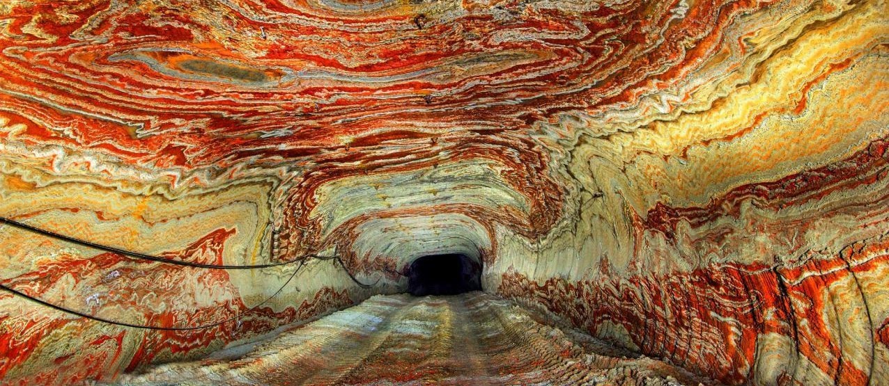 تصویری از معادن رها شده در یکاترینبورگ روسیه.لایه های کارنالیت (یک ماده معدنی مورد استفاده در کود) در دیواره های تونل، سبب تولید این شاهکار رنگارنگ طبیعی شده است .