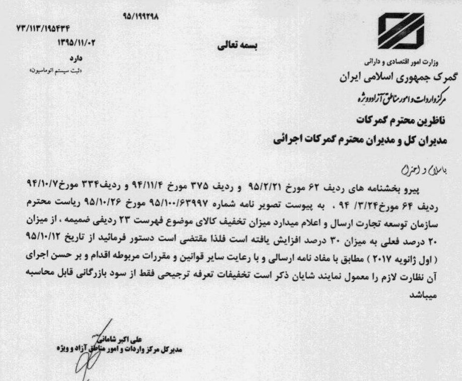 به گزارش خبرنگار اقتصادی باشگاه خبرنگاران تسنیم«پویا»، بر اساس بخشنامه گمرکی میزان تخفیف کالاهای وارداتی از ترکیه از 20درصد به 30 درصد کاهش یافته است.بر اساس این بخشنامه گمرک، تخفیف 30 درصدی 23 قلم کالای وارداتی از ترکیه از اول ژانویه اعمال شده است.