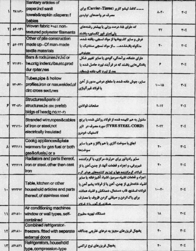 23 قلم کالایی که شامل تخفیف تعرفهای شده اند در جدول زیر قابل مشاهده میباشد.