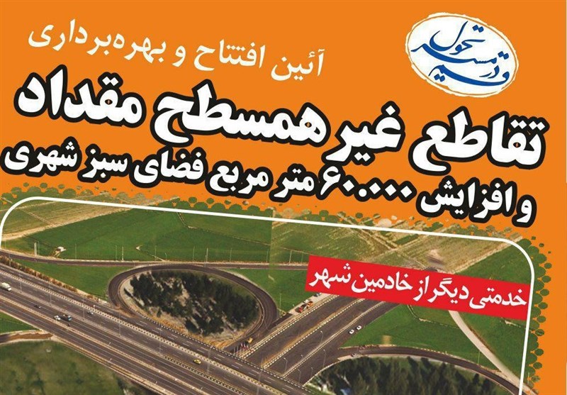 به گزارش خبرگزاری تسنیم از قم، مراسم افتتاح و بهرهبرداری از تقاطع غیر همسطح مقداد و افزایش 60 هزار مترمربعی فضای سبز شهری صبح امروز با حضور علی لاریجانی رئیس مجلس شورای اسلامی، امیرآبادی و ذوالنور نمایندگان قم در مجلس شورای اسلامی، استاندار قم، رئیس شورای اسلامی شهر ، شهردار قم، مسئولان و معاونان شهرداری قم برگزار شد.