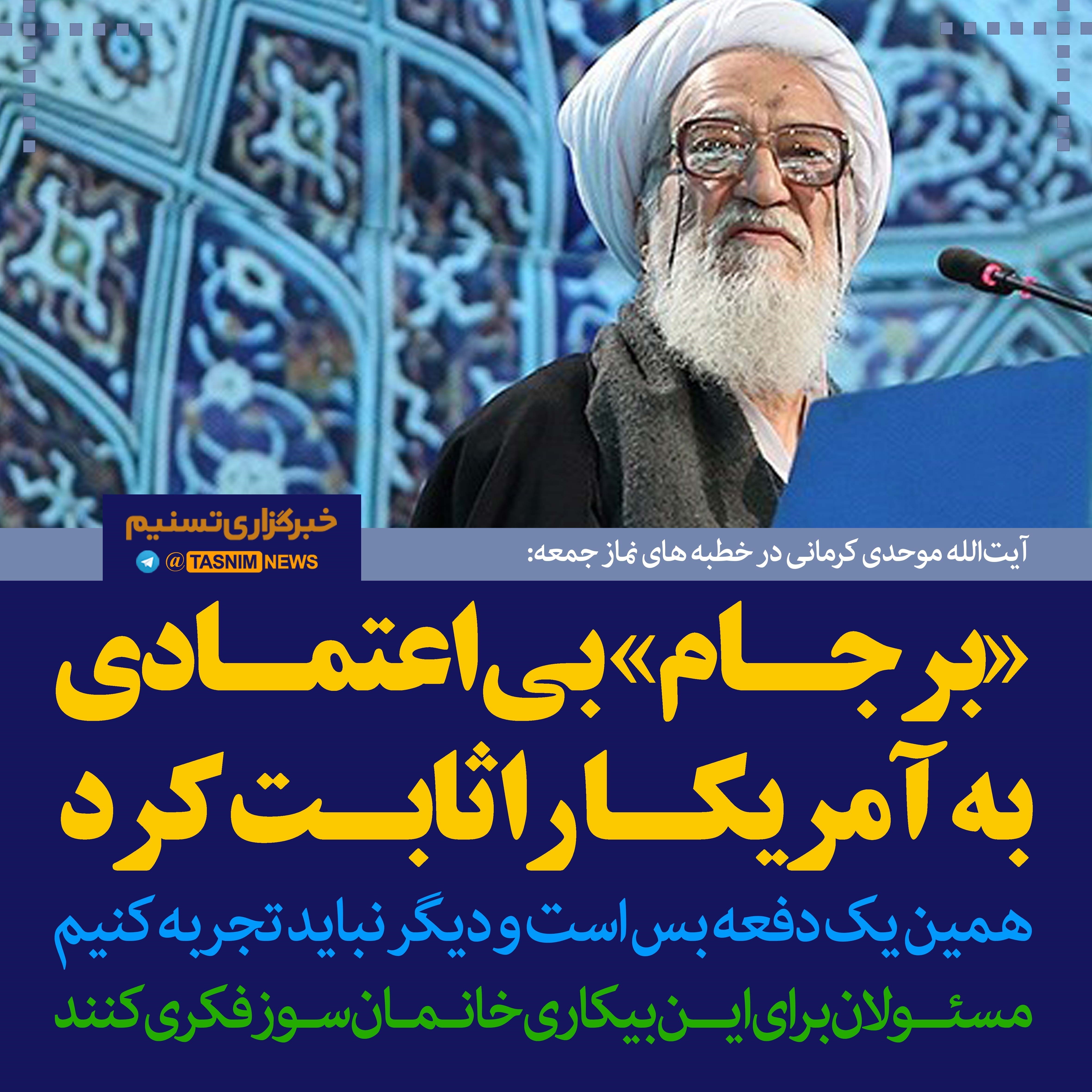 فتوتیتر/آیت الله موحدی کرمانی:«برجام» بی‌اعتمادی به آمریکا را ثابت کرد