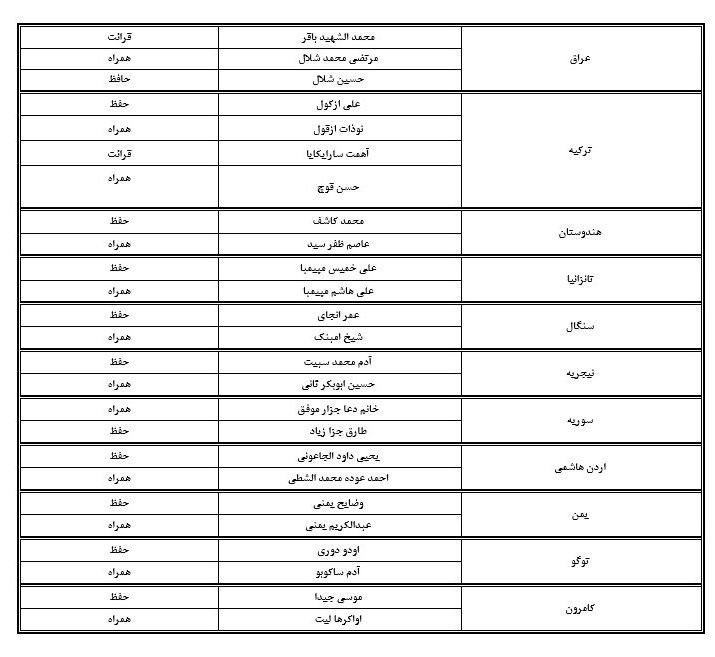 59 نفر روشندل در این دوره از مسابقات به تفکیک 19 نفر در رشته حفظ کل، 11 نفر رشته قرائت و 29 نفر همراه این عزیزان میهمان کشورمان خواهند بود.