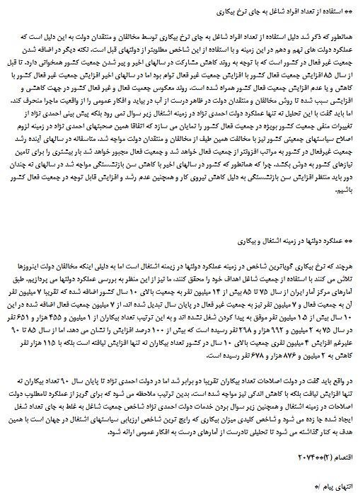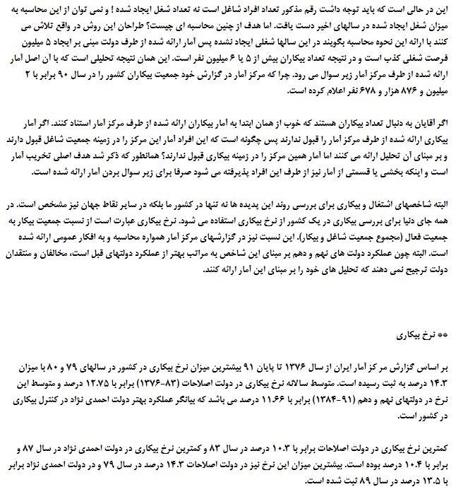 * نمونه این تحلیل نادرست در زمینه اشتغال و بیکاری ارائه شد و ادعا شد که در فاصله سالهای 85 تا 90 در کشور فقط سالانه 14 هزار شغل ایجاد شده است!