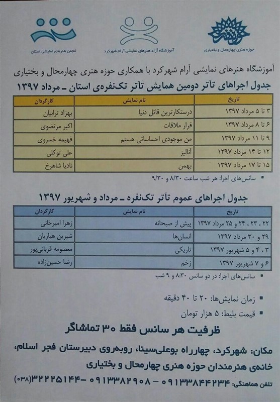 لیست نمایشها و ساعت نمایش در جدول زیر آورده شده است.