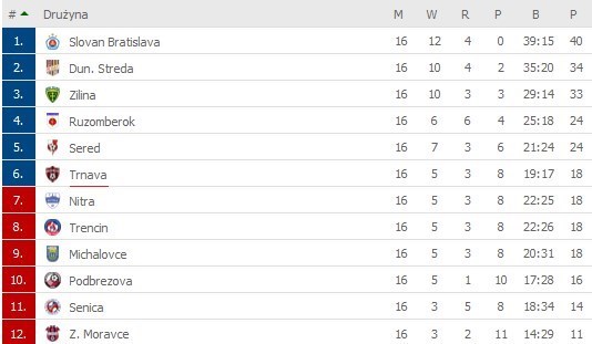 در جدول ردهبندی 12 تیمی فورتونا لیگ اسلواکی تیم اسپارتاک ترناوا با 18 امتیاز ششم است.
