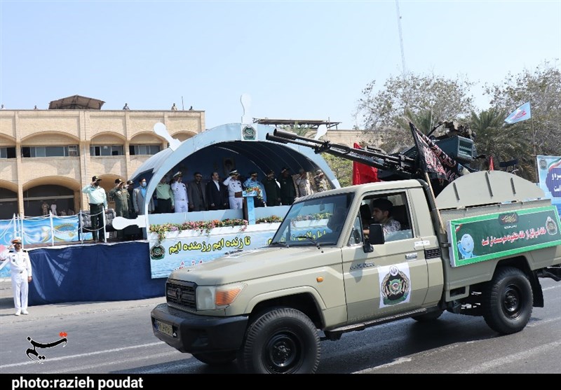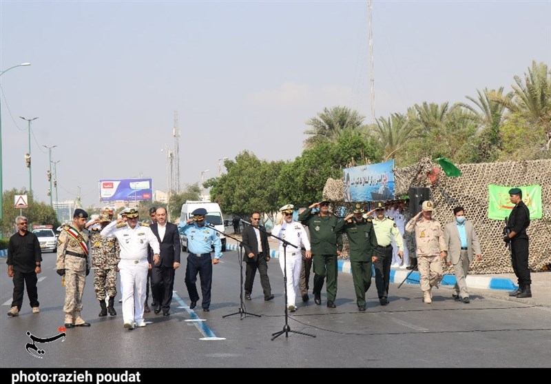 این رژه با حضور فرماندهان ارشد نیروهای مسلح مستقر در استان هرمزگان و اعضای شورای تامین استان در بلوار ساحلی بندرعباس در حال برگزاری است.