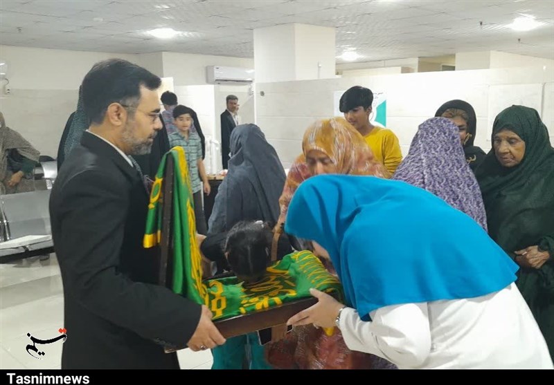 همچنین امروز کاروان زیر سایه خورشید با حضور در بیمارستان شریعتی بندرعباس حاضر شدند، خدام رضوی باپرچم متبرکه حرم امام رضا(ع) دربخش کودکان بیمارستان شریعتی بندرعباس حضور یافتند.