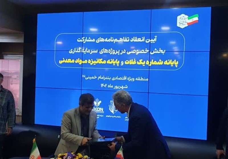 از دیگر پروژههای انعقاد تفاهمنامه سرمایهگذاری و بهرهبرداری از پایانه مواد معدنی بندر امام خمینی(ره) به ارزش ریالی هشت هزار میلیاردی و پیشبینی اشتغالزایی 200 نفری بین اداره کل بنادر و دریانوردی خوزستان با شرکت پایانهها و مخازن پتروشیمی، انجام شد.