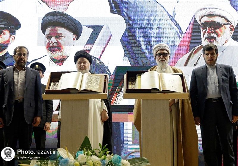 به گزارش خبرگزاری تسنیم از مشهد، به نقل از آستان نیوز، حجت الاسلام والمسلمین احمد مروی در آیین رونمایی از کهنترین نسخه قرآنی جهان با قدمت هزار و 400 سال که با عنوان «مصحف مشهد رضوی» به مناسبت سی و یکمین هفته کتاب جمهوری اسلامی ایران، با حضور حجت الاسلام والمسلمین سید جواد شهرستانی نماینده آیت الله سیستانی در ایران و جمعی از علما، فقها، مسئولان فرهنگی و اساتید حوزه و دانشگاه در تالار قدس حرم مطهر امام رضا(ع) برگزار شد؛ اظهارداشت: ما مفتخریم که کتاب خدا و عترت را در کنار یکدیگر داشته و در جوار بارگاه قدس رضوی از این اثر ماندگار رونمایی میکنیم و این امر را جلوه و عینیتی از پیوند قرآن و عترت میدانیم که بهترین یادگاران پیامبر عظیم الشأن(ص) برای جامعه بشری هستند.