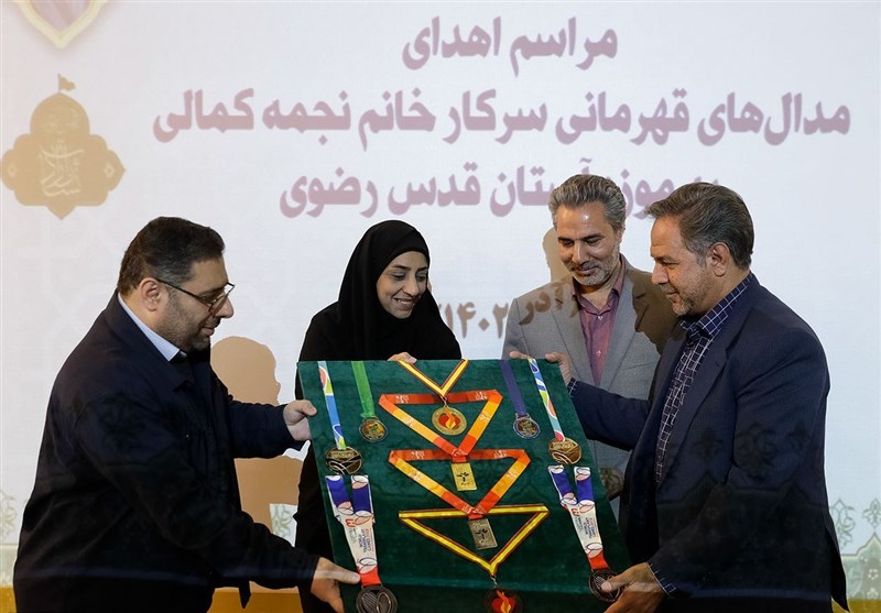 این ورزشکار در این مراسم مدال نقره انفرادی و طلای دوبل مسابقات 2013 آفریقا، مدال طلای انفرادی و طلای دوبل2015 آرژانتین، مدال برنز انفرادی وطلای دوبل2017 اسپانیا، مدال نقره انفرادی و برنز دوبل2019 انگلیس و مدال طلای انفرادی ونقره دوبل2023 مسابقات جهانی استرالیا را به آستان قدس رضوی اهدا کرد.