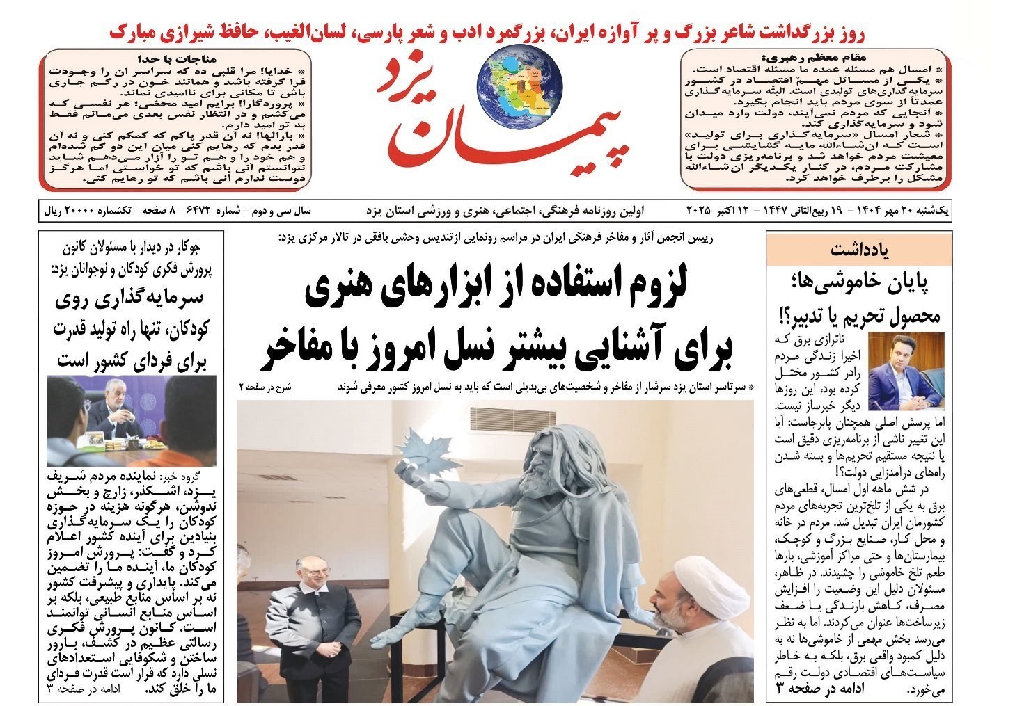منتخب صفحات نخست روزنامههای یزد این امکان را برای مخاطبان فراهم میکند که در یک نگاه، مروری جامع بر مهمترین تیترها و موضوعات روز و اخبار یزد داشته باشند و تصویری روشن از اولویتها و دغدغههای رسانهای استان به دست آورند.