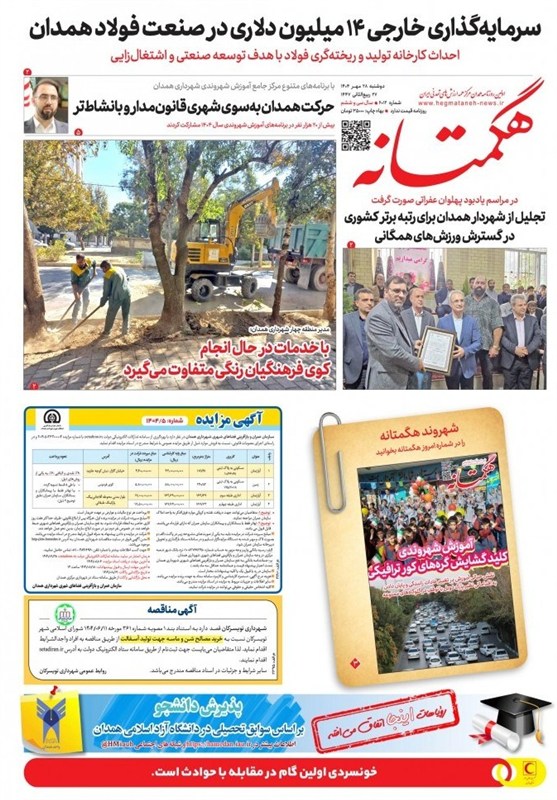منتخب صفحات نخست روزنامهها به مخاطبان این امکان را میدهد که در یک نگاه، مهمترین مطالب و تیترهای خبری استان همدان را مرور کنند و تصویر جامعی از اولویتها و دغدغههای رسانهای روز را به دست آورند.