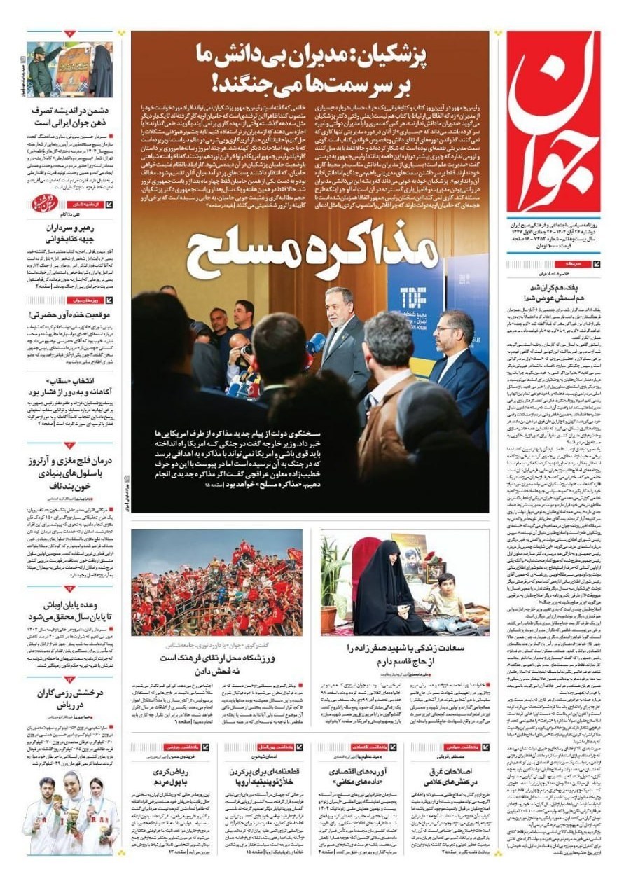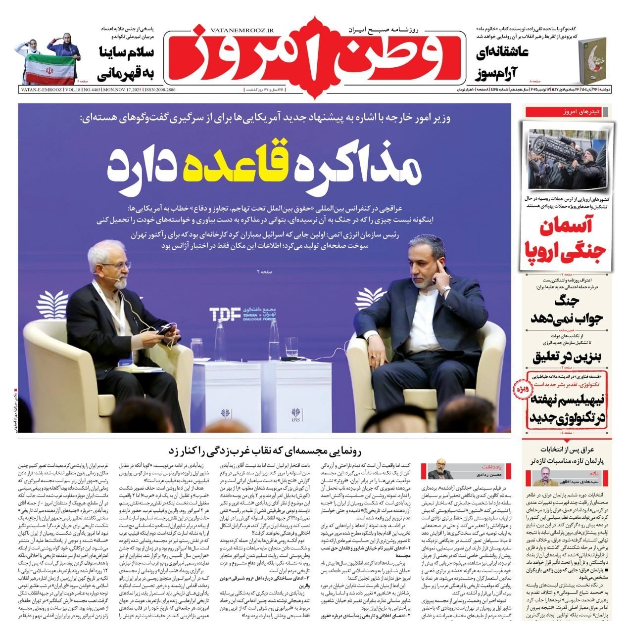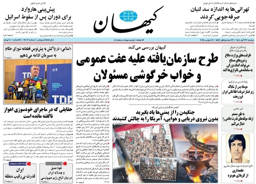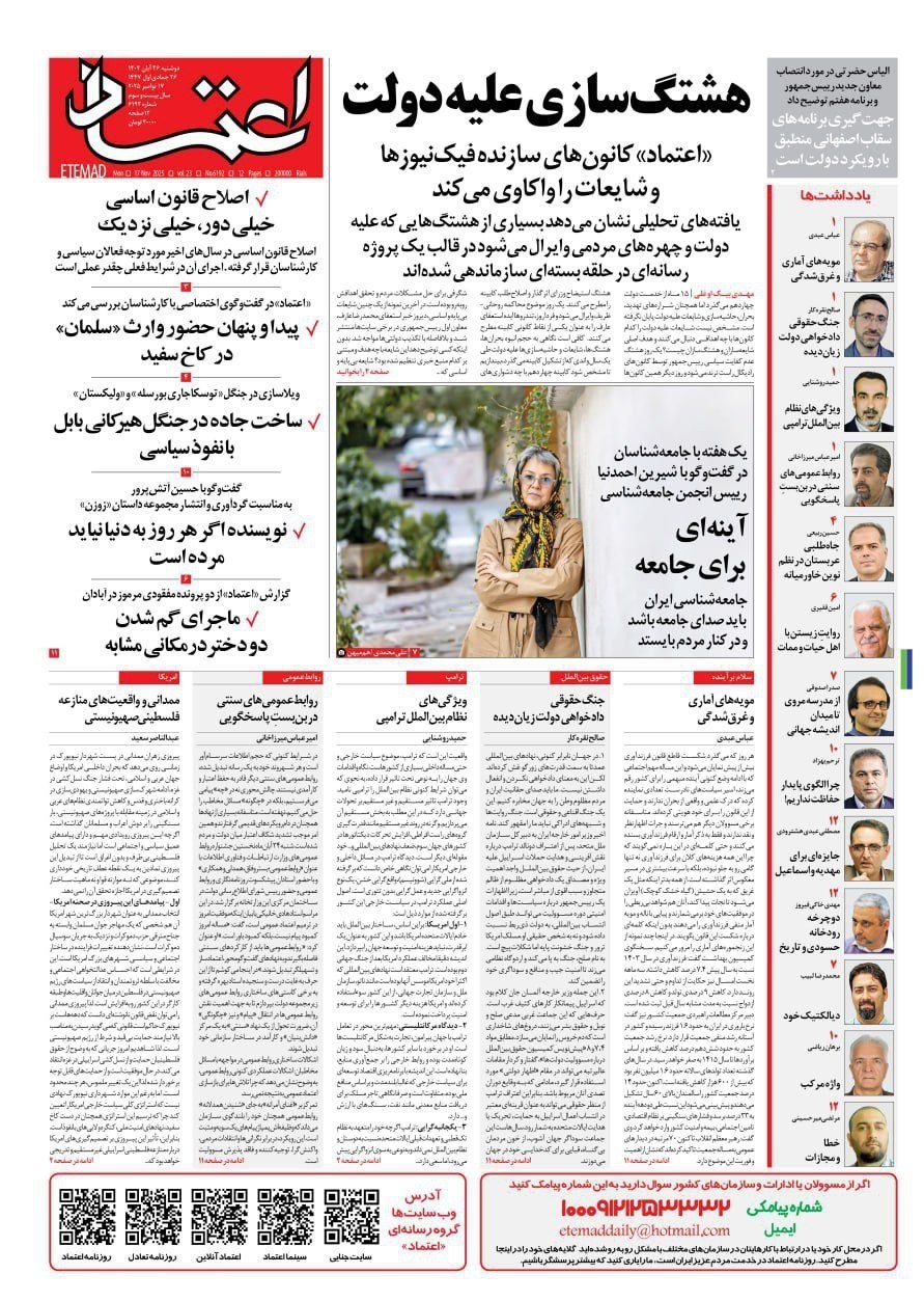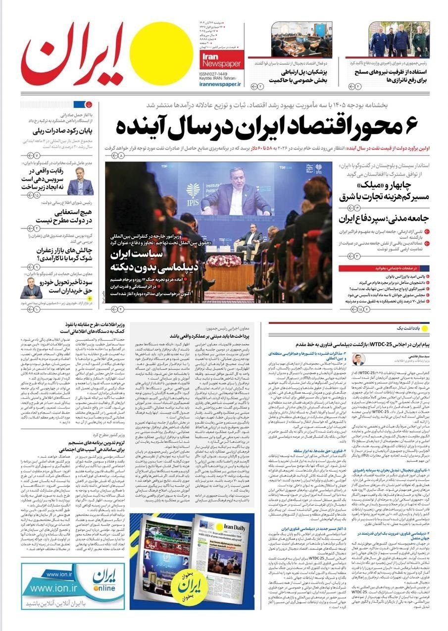 صفحه اول مطبوعات دوشنبه 26 آبان/پنجره نیمه باز دیپلماسی