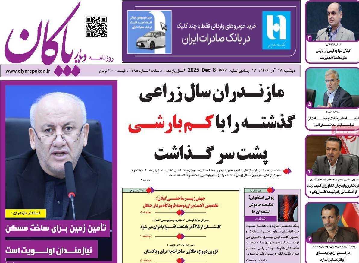 منتخب صفحات نخست روزنامهها به مخاطبان این امکان را میدهد که در یک نگاه، مهمترین مطالب و تیترهای خبری استان مازندران را مرور کنند و تصویر جامعی از اولویتها و دغدغههای رسانهای روز را به دست آورند.