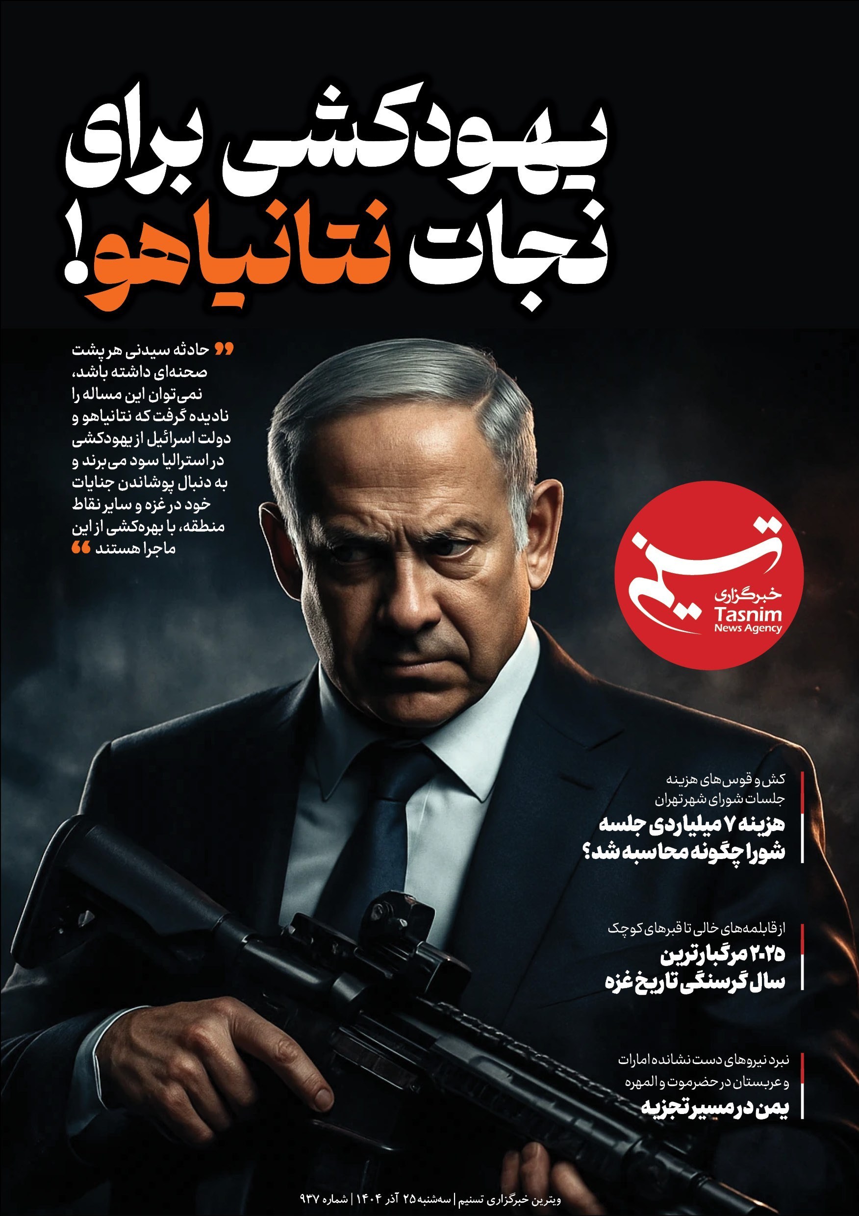 ویترین تسنیم شماره 937/ «یهودکشی برای نجات نتانیاهو!»