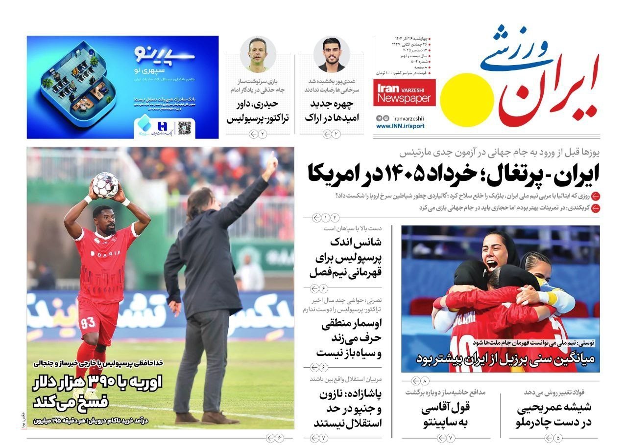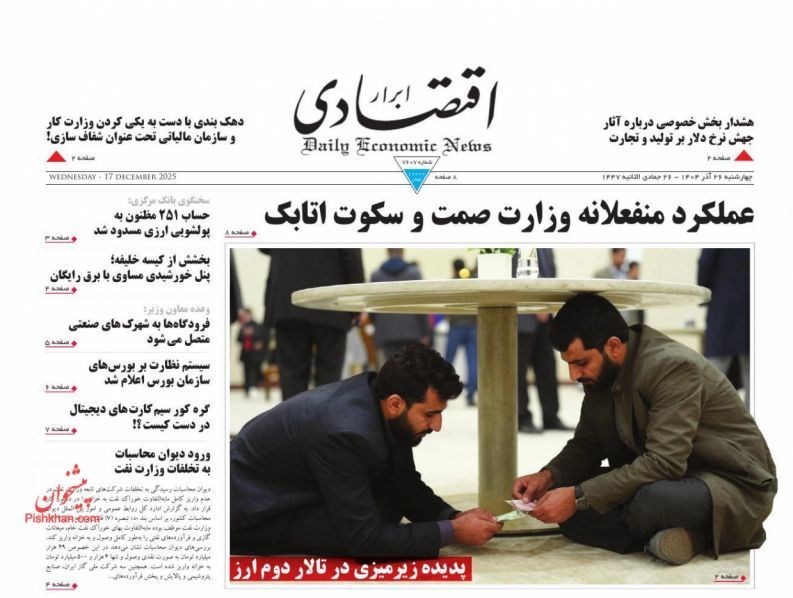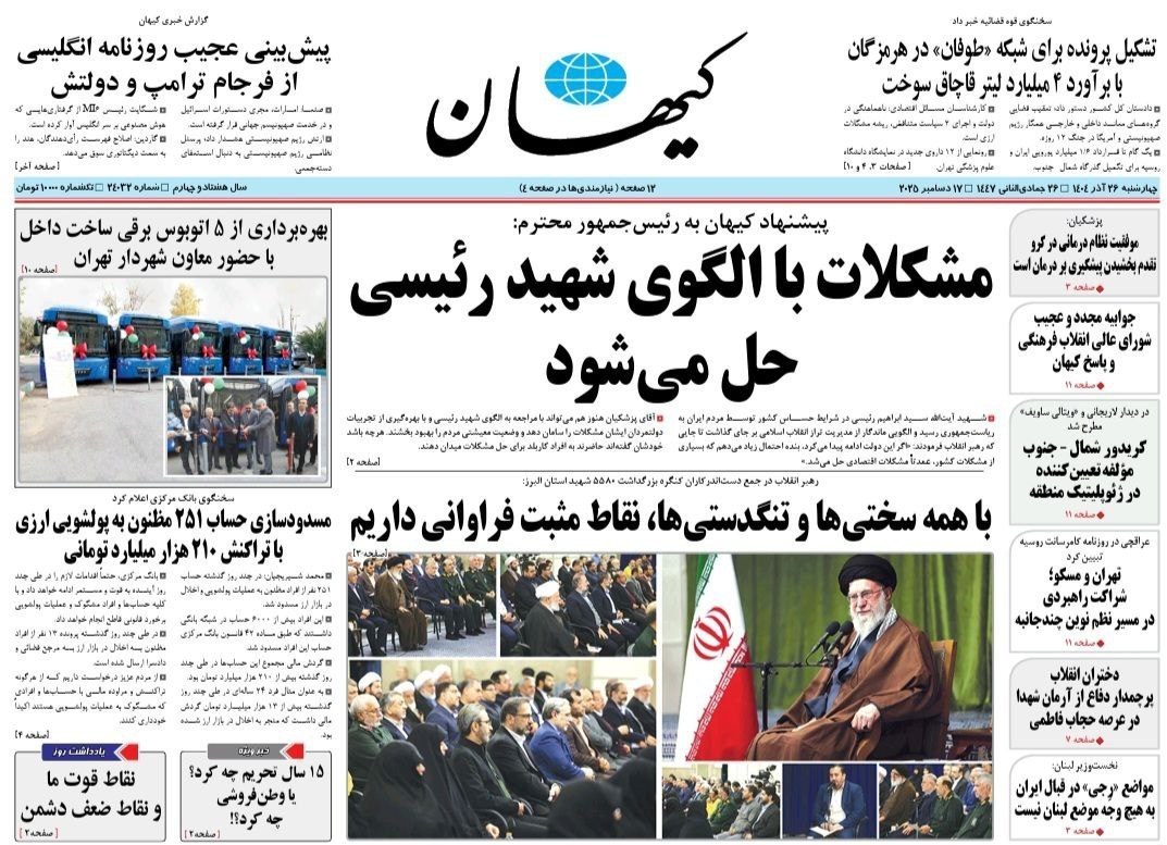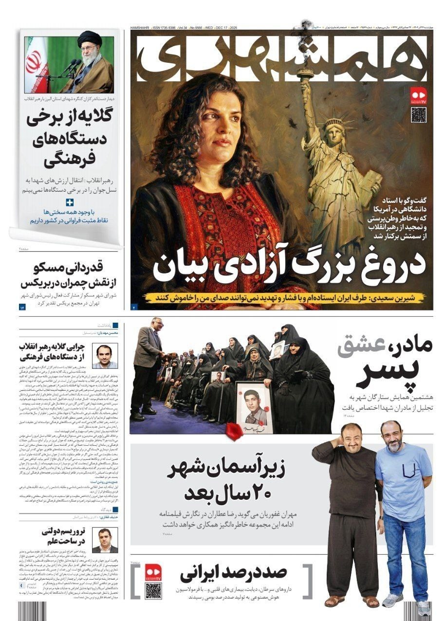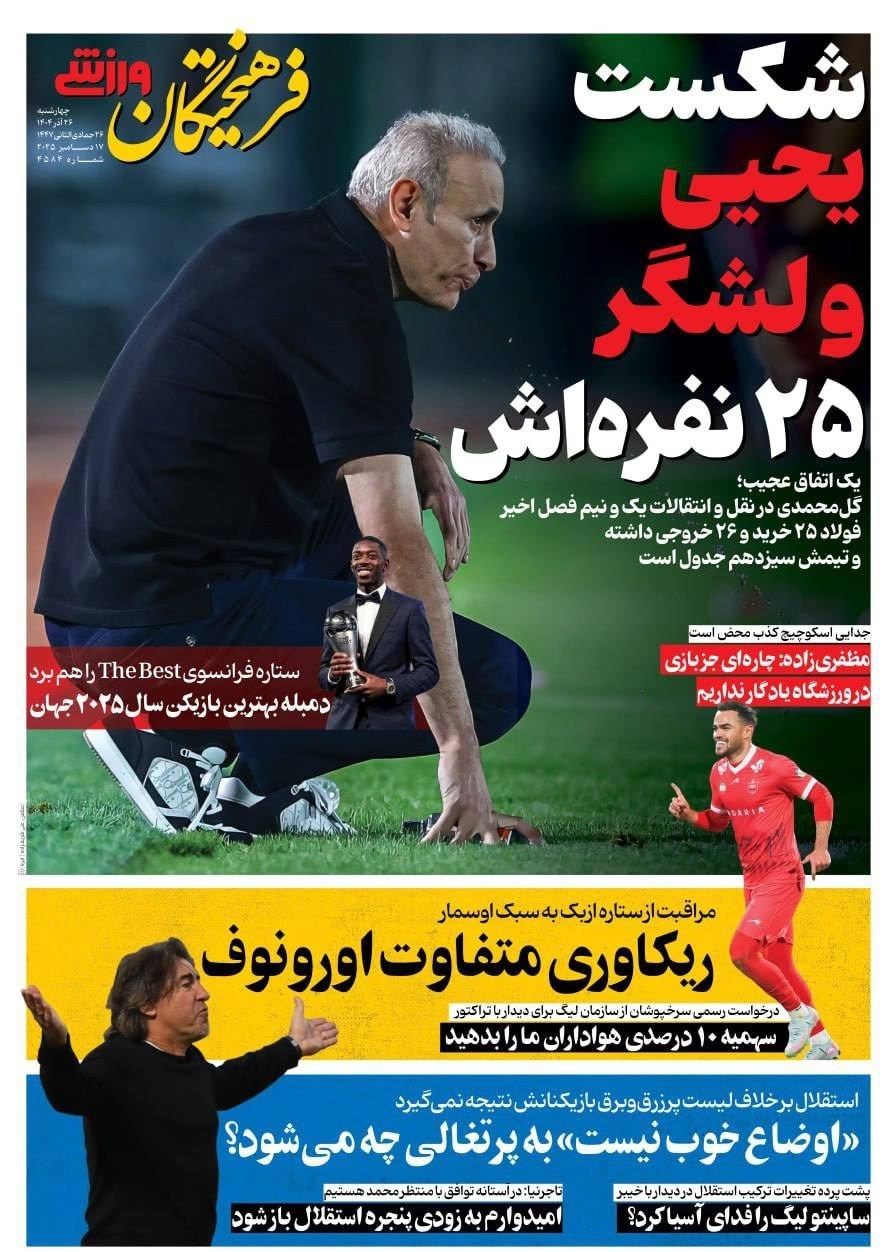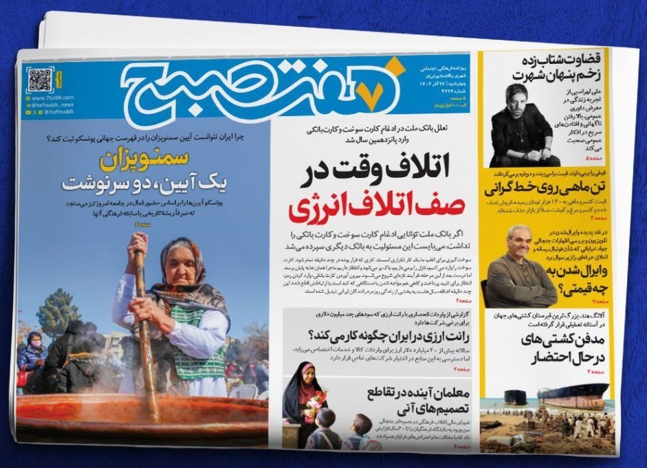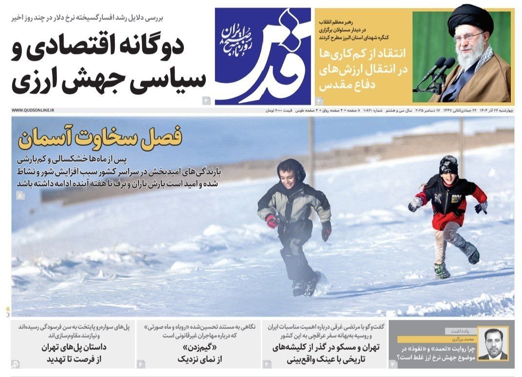 صفحه اول مطبوعات چهارشنبه 26آذر/فصل سخاوت آسمان