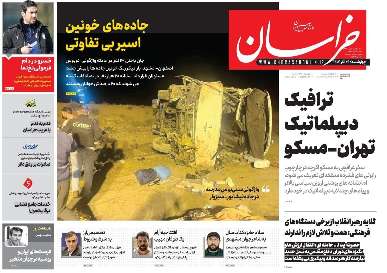 تصاویر منتخب صفحات نخست روزنامه‌های چهارشنبه 26 آذر منتشر شد.