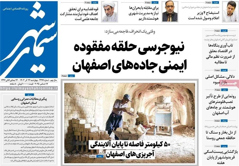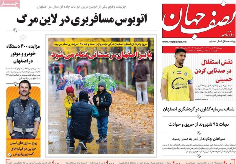 مطبوعات چهار‌شنبه 26 آذر در استان اصفهان/پاییز اصفهان زمستانی تمام می شود
