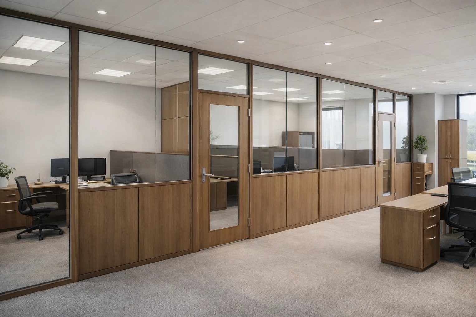 این نوع پارتیشن به دلیل عبور نور طبیعی و ایجاد حس باز بودن فضا، انتخاب محبوبی در دفاتر مدرن است. شیشههای سکوریت یا لمینت در صورت اجرای اصولی، ایمن و بادوام هستند. با این حال، اگر ضخامت شیشه، نوع فریم و جزئیات نصب بهدرستی انتخاب نشود، انتقال صدا میتواند مشکلساز شود.
