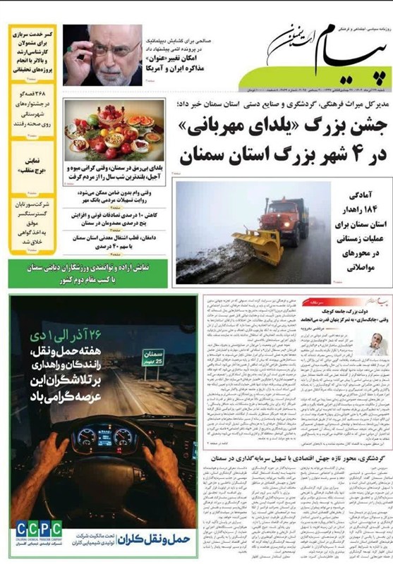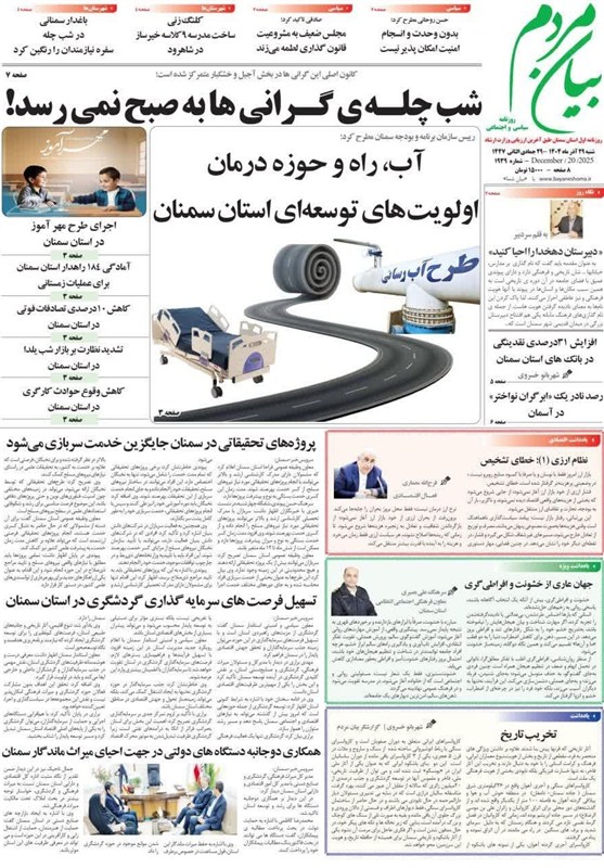 شنبه 29 آذر در استان سمنان (بیان مردم) و (پیام استان سمنان) منتشر شد، این مرور مطبوعاتی بازتابدهنده مهمترین رویدادها، چالشها و تحولات اقتصادی، اجتماعی و سیاسی استان است.