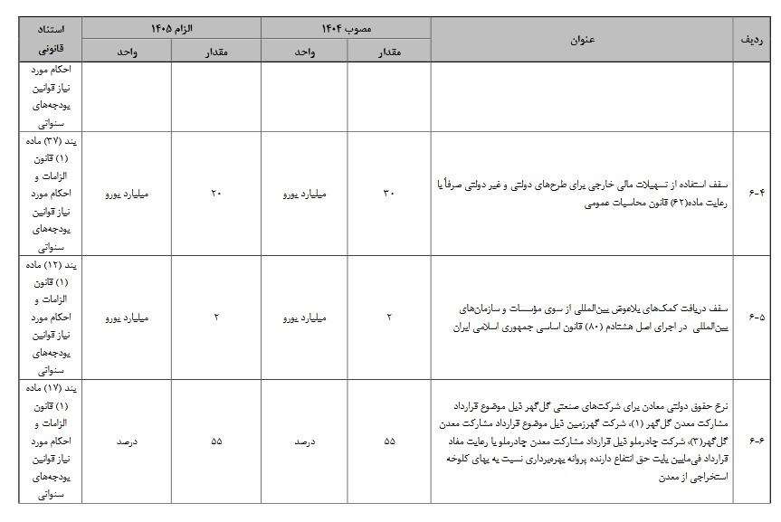 جزئیات بودجه 1405| سقف تسهیلات مالی خارجی به 20 میلیارد یورو رسید