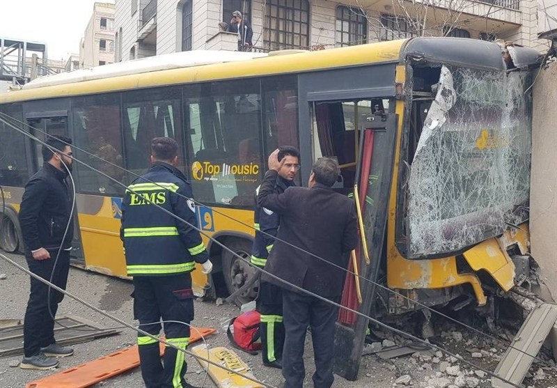 2 مصدوم در پی برخورد اتوبوس با مانع در خیابان مخبری