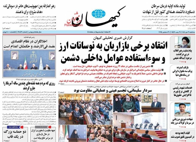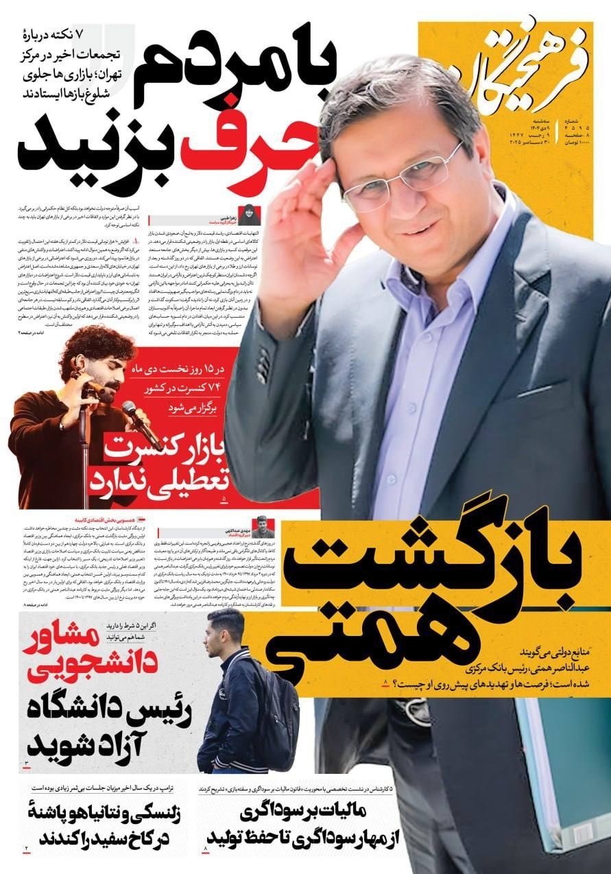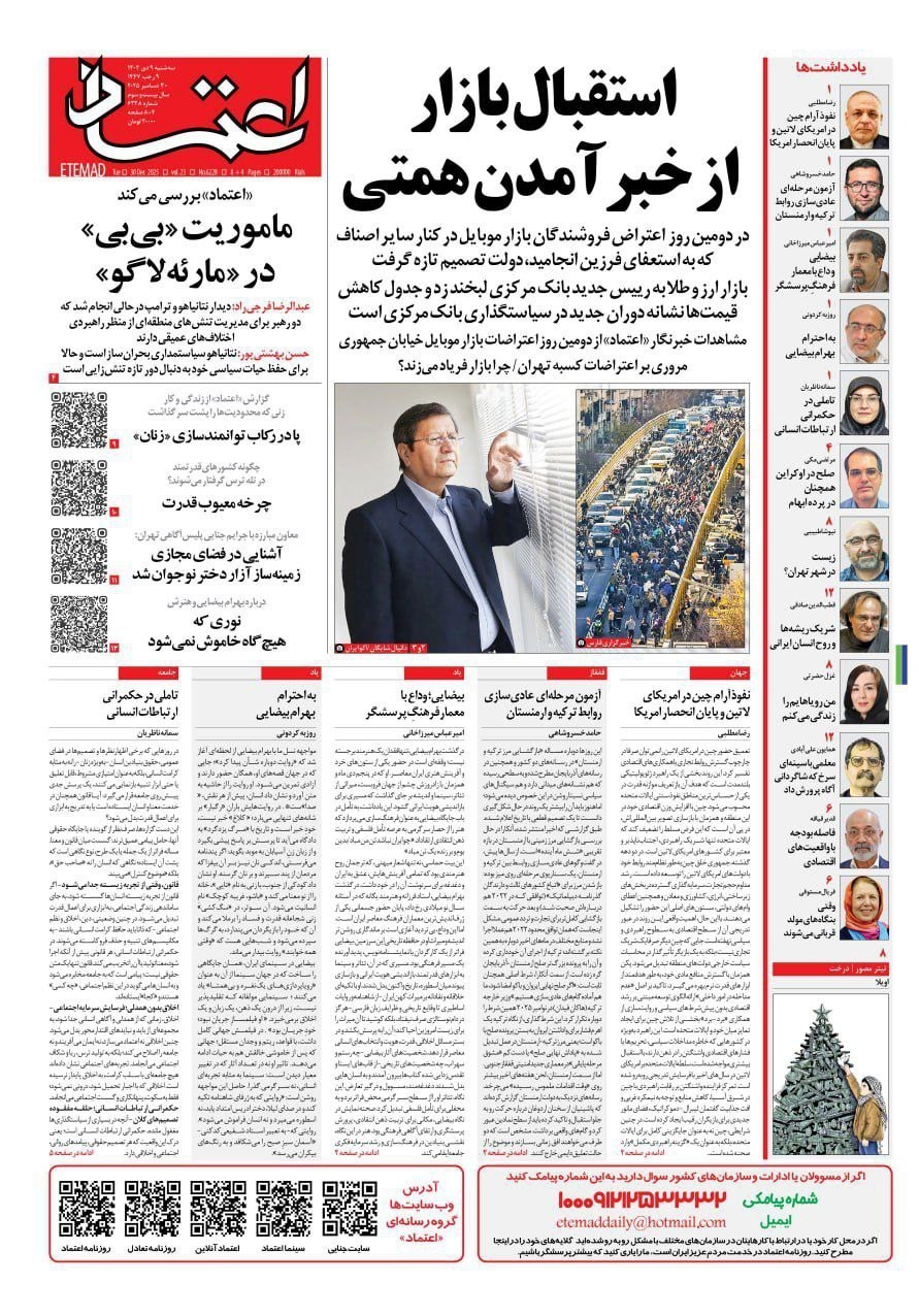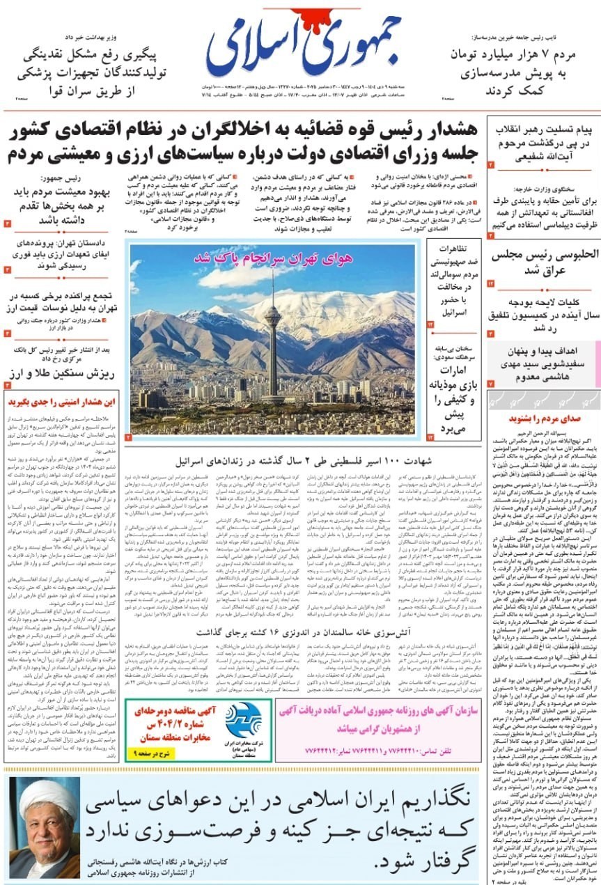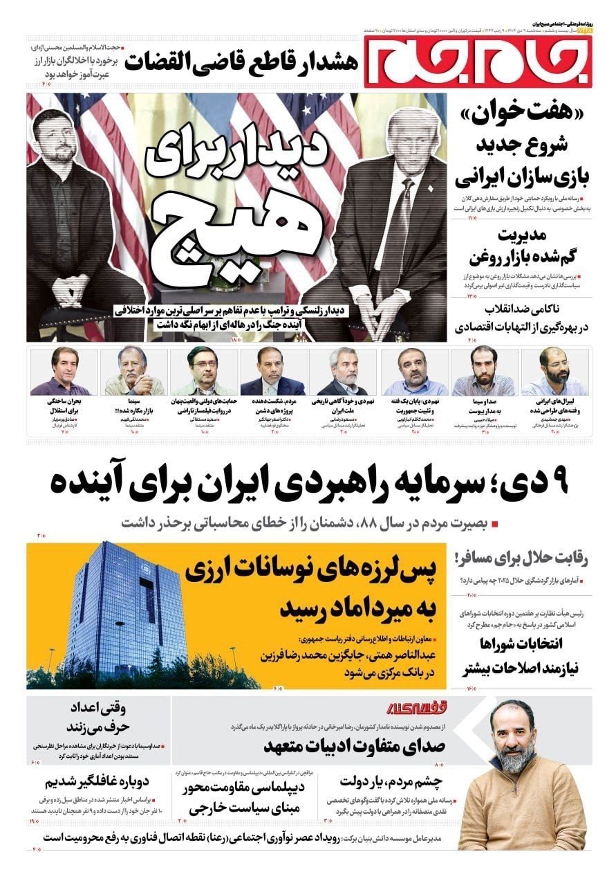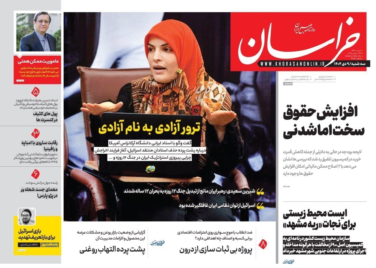 صفحه اول مطبوعات سه شنبه 9 دی/ترور آزادی به نام آزادی