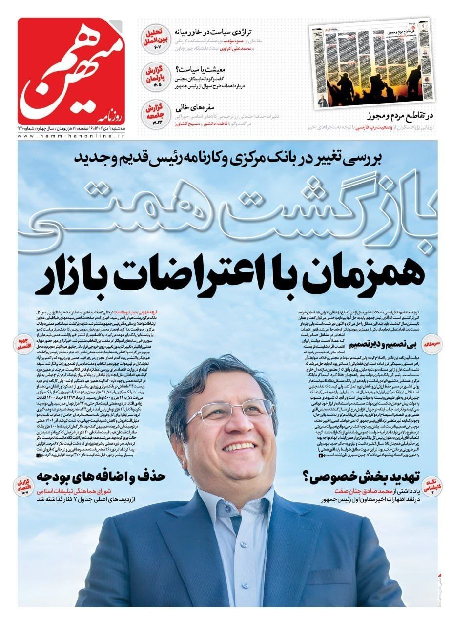 تصاویر منتخب صفحات نخست روزنامه‌های سه شنبه 9 دی منتشر شد.