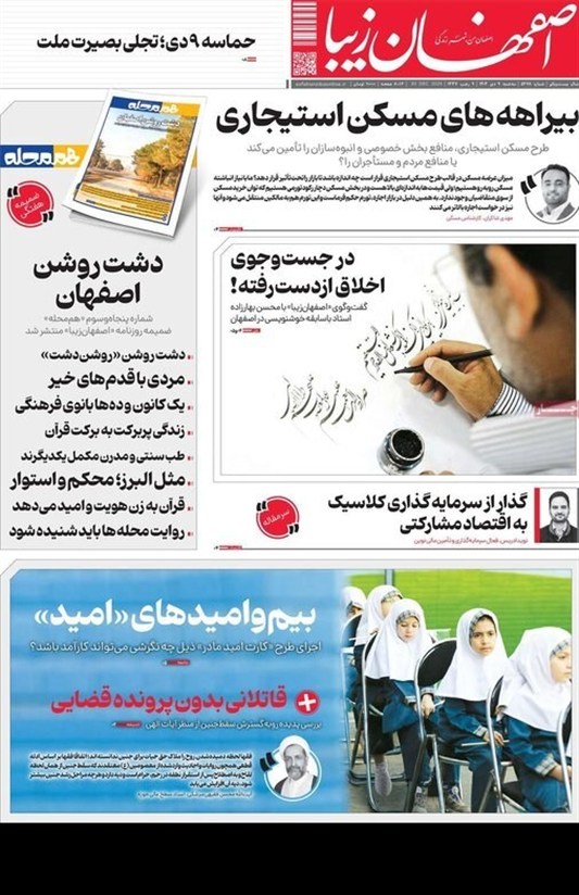 مطبوعات سه‌شنبه 9 دی‌ماه اصفهان؛ بیراهه‌های مسکن استیجاری