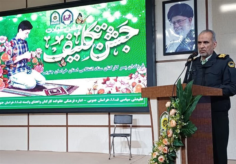 سردار جسن شجاعی نسب فرمانده انتظامی خراسان جنوبی در این مراسم، با اشاره به تقارن رویداد با ایام ولادت حضرت امام جواد(ع)، حضرت علی‌اصغر(ع) و پیشاپیش میلاد امیرالمؤمنین علی(ع)، ورود نوجوانان به سن تکلیف را نعمتی ارزشمند دانست و تأکید کرد: این مرحله، آغاز بندگی و اطاعت الهی و راهی به سوی امنیت و آرامش در زندگی است.