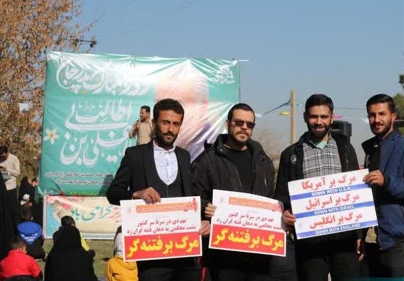 آنان همچنین با سردادن شعارهایی علیه آمریکا، رژیم صهیونیستی و آشوبگران، مخالفت خود را با دخالتهای بیگانگان و هرگونه اقدام مغایر با امنیت ملی اعلام کردند.