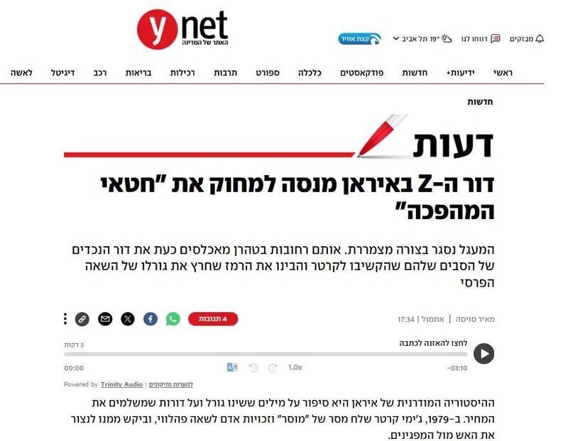 به عنوان مثال، وبسایت یدیعوت آحارانوت با گزارشی در رابطه با آشوبهای ایران تحت عنوان انقلاب ایران، مدعی حضور گسترده نسل z و نوجوانان در میادین عمومی شهرها شده و اینگونه تلقین میکند که بدنه جمعیت آشوبگران، اکثرا نوجوانان و جوانان هستند که خواهان انقلاب و تغییر حکومت و بازگشت پهلوی میباشند، در حالی که در روزهای گذشته همانطور که در تصاویر و فیلمهای مربوط به هستههای خشونت طلب و آشوبگران دیده میشود، هیچ تصویری از آنچه که این رسانه صهیونیست حضور گسترده نوجوانان و جوانان عنوان میکند، به چشم نمیخورد.