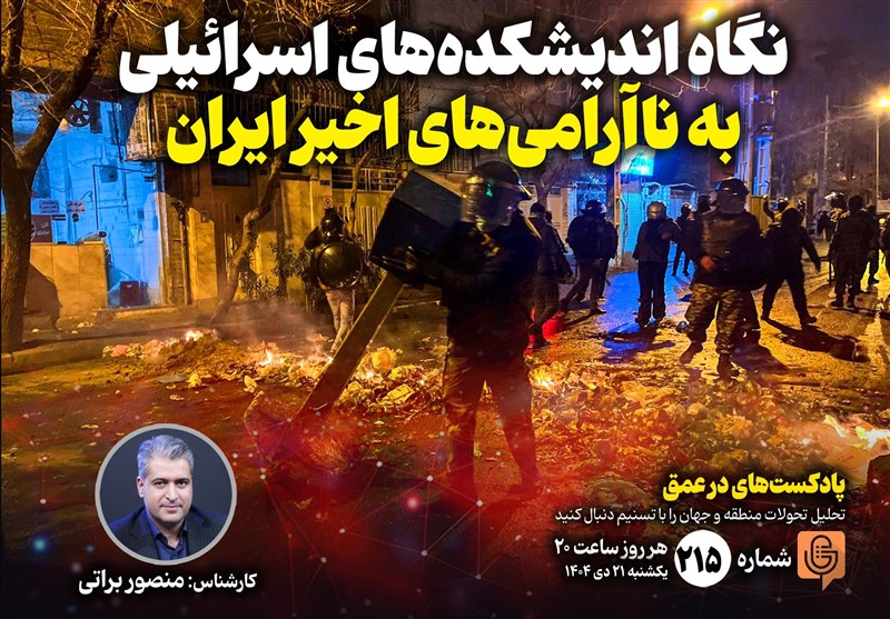 به گزارش گروه بین‌الملل خبرگزاری تسنیم، دویست و پانزدهمین شماره از پادکست «در عمق» که به بررسی مهم‌ترین روندها، تحولات و همچنین شخصیت‌ها در غرب آسیا می‌پردازد، روز یکشنبه 21 دی ماه 1404 ضبط و منتشر شد. در این شماره «منصور براتی»، کارشناس مسائل اسرائیل اصلی‌ترین گزارشات و مقاله‌هایی که اندیشکده‌‌ها و رسانه‌های صهیونیستی درباره اعتراضات و ناآرامی‌های ایران منتشر کرده‌اند، را بررسی می‌کند.