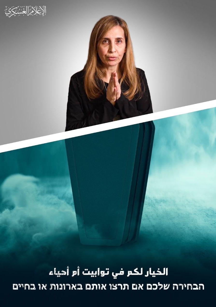אל-קסאם פרסם תמונה של אסיר ישראלי ששוחרר מוקדם יותר במהלך פעולות החילוף, תחת הכותרת: "הבחירה היא שלך בארונות או בחיים!"