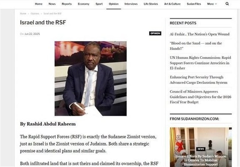 החוקר והפרשן הפוליטי הסודאני רשיד עבד אל-רח’ים כתב על קשר הדם בין הישות הציונית לטרוריסטים של כוחות התמיכה המהירה, באומרו: "כוחות התמיכה המהירה הם הגרסה הסודאנית של הציונות, בדיוק כפי שישראל היא הגרסה הציונית של היהדות. שתי הישויות מבוססות על תפיסה אסטרטגית דומה, על תכניות משותפות ועל מטרות זהות. שתיהן פלשו לאדמות שאינן שלהן: כוחות התמיכה המהירה פלשו לחרטום וחשפו את יעדיהם האמיתיים, כפי שעשתה ישראל כאשר כבשה את פלסטין."
