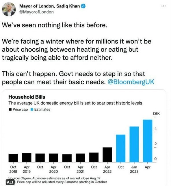 העלייה תביא לעלייה של 70 ליש"ט בעלות חשבון האנרגיה הטיפוסי, כאשר מיליוני משקי בית בריטיים עומדים בפני עלייה שנתית של 1,420 ליש"ט.
