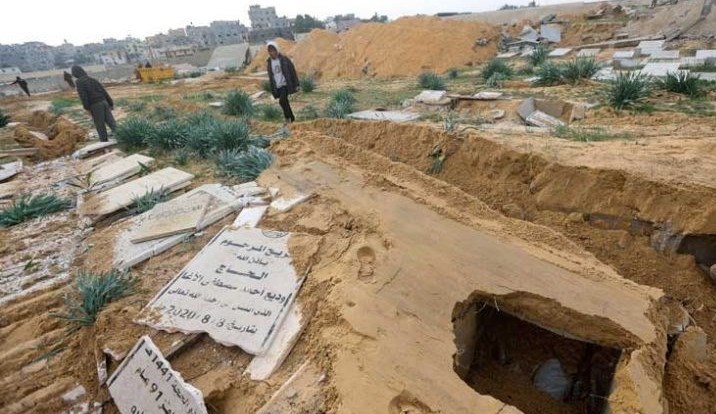 В первые месяцы войны в секторе Газа израильская оккупационная армия с применением бульдозеров разрушила десятки кладбищ в разных районах анклава. Проявляя полное неуважение, военные эксгумировали сотни тел палестинцев и перевезли их в военные казармы.