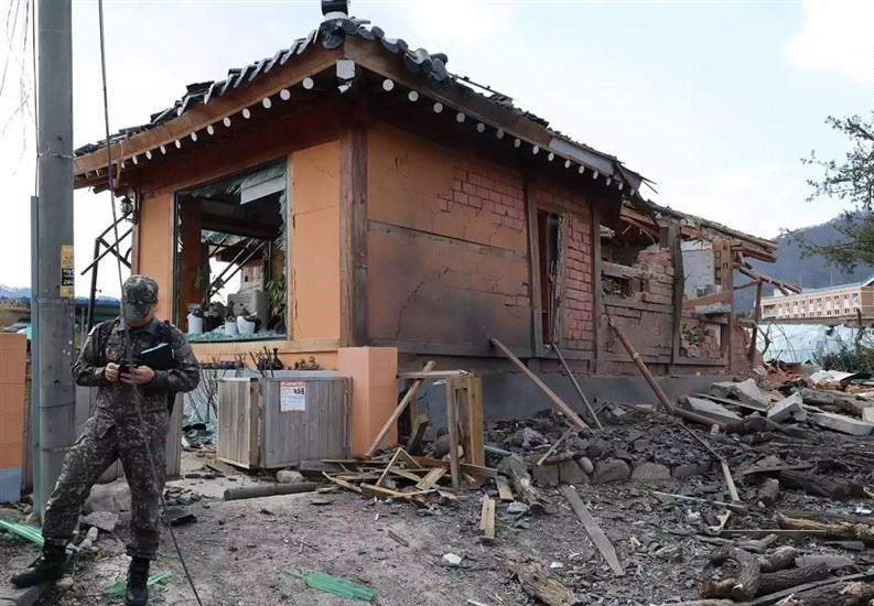 В четверг в 10:00 утра два южнокорейских истребителя в ходе совместных учений с американскими войсками сбросили восемь бомб на гражданский район.