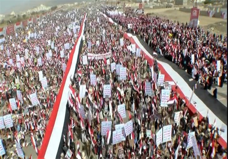 Ensarullah hareketi siyasi büro şefi Salih el-Samad, protestoda yaptığı konuşmada şu ifadeleri kullandı: “Amerikalı Suudilerin zalimce saldırıları karşısında bir yıldır direnen Yemen halkının, zafer ya da mağlubiyetten başka bir seçeneği yoktur. Yemen halkı bu gün burada, Arap Yarımadasının şahit olduğu en büyük kalabalık ile toplanarak asla başka bir ülkeye saldırmamış ve hiçbir ülkeyle ilişkisine zarar vermemiş bir millete karşı yapılan bu büyük saldırı ve işgale “hayır” demek için, bir araya geldiler.”