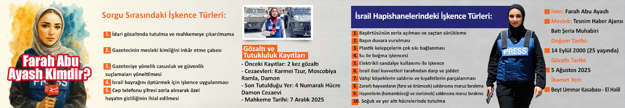 İsrail gazetesi Yedioth Ahronoth, Tesnim Haber Ajansı muhabiri Farah Abu Ayash'ın Şin Bet tarafından sorgulandığına dair bir rapor yayımladı. Raporda, sorgulayıcının muhabirin cevapları karşısında çaresiz kaldığı ve ajansa yönelik somut bir kanıt bulunamadığı belirtildi.